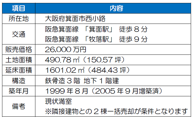 大阪府箕面市編今回のおススメ【収益不動産】 満室一棟売マンションオーナーチェンジ現状利回り7%強『りめいく』賃貸物件として稼ぐ5 今回のご提案は、 中古収益…